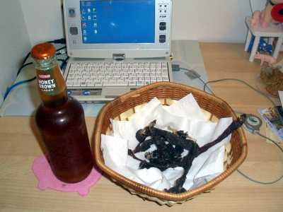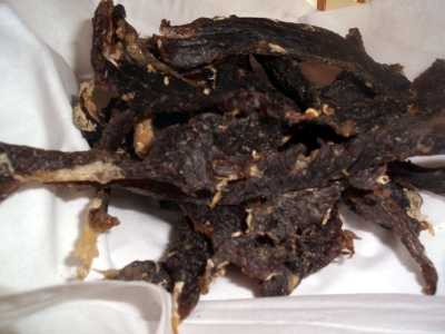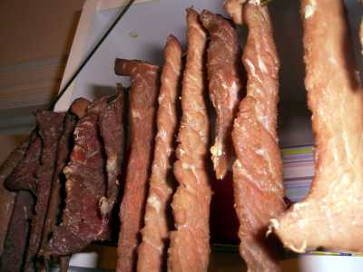 写真では量が減ってますが、何故って味が薄いなぁと思って、また違うタレを作って漬け込んだ分が抜けてます。最初に出来たのは、ちょっと味が薄くてがちがちだったんだけど(それはそれでまぁまぁの味)、二度漬けジャーキーは滅法美味しかったですよ!!